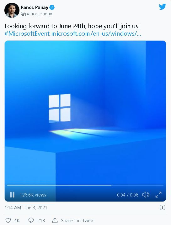 6월 '11일'에 윈도우 공식 유튜브 채널에서 영상 하나를 일부 공개로 올렸는데 배경에 윈도우 로고를 통과한 빛이 부자연스럽게 가로 선이 없어서 숫자 11처럼 보이는데다가 윈도우 11 출시 아니냐는 떡밥이 돌고 있음